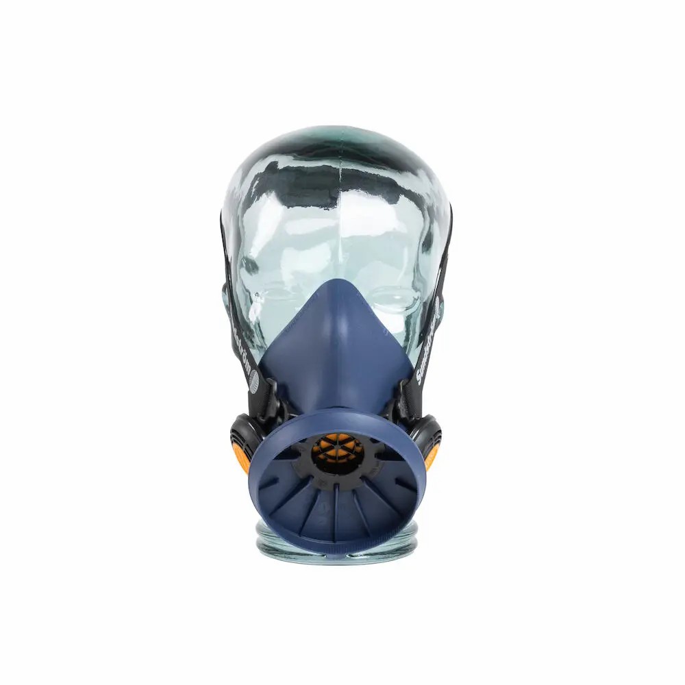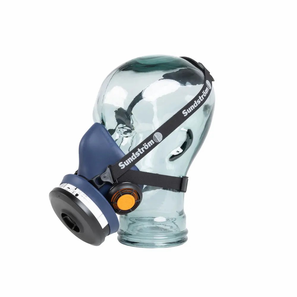 SR100 半面具由硅胶材料制成, 共有三个尺寸:S/L,M/L和 L/XL,并配有两个呼气阀可以确保极低的呼吸阻力。盖上带有隔片,可以有效地防止呼气膜片被灰尘和油漆喷雾堵塞。面具的主体材质和颜料都经过美国FDA和BGA的食品验证,将发生接触过敏的可能性减至最小。面具的V型弹性头带不但易于调整,而且宽大的碟形固定片还能使配戴更为稳固和舒适。面具既可用作与桑德斯托姆系列过滤器结合使用的过滤装置,也可连接压缩空气组件SR307使用,作为提供持续流动空气的呼吸器。并提供预过滤器支架。保存时最好使用存放盒SR230或SR339。